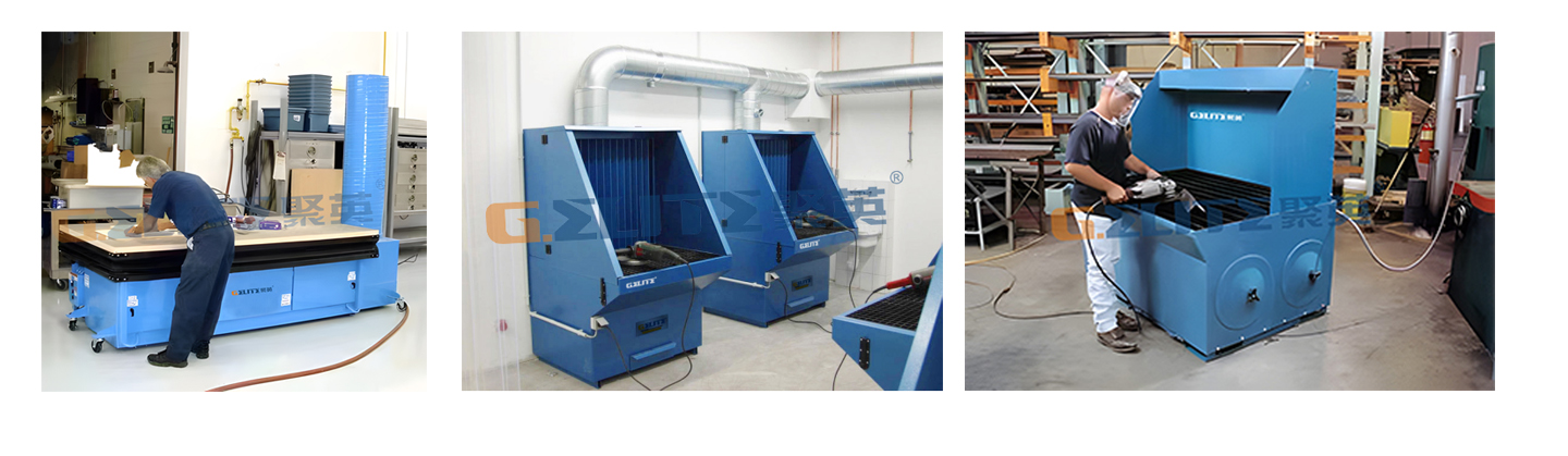 針對于小工件人工(打磨/拋光)產(chǎn)生煙、粉塵,具有風(fēng)量小,濃度低等特點,使用自凈式打磨臺、抽吸收打磨臺粉塵收集治理。