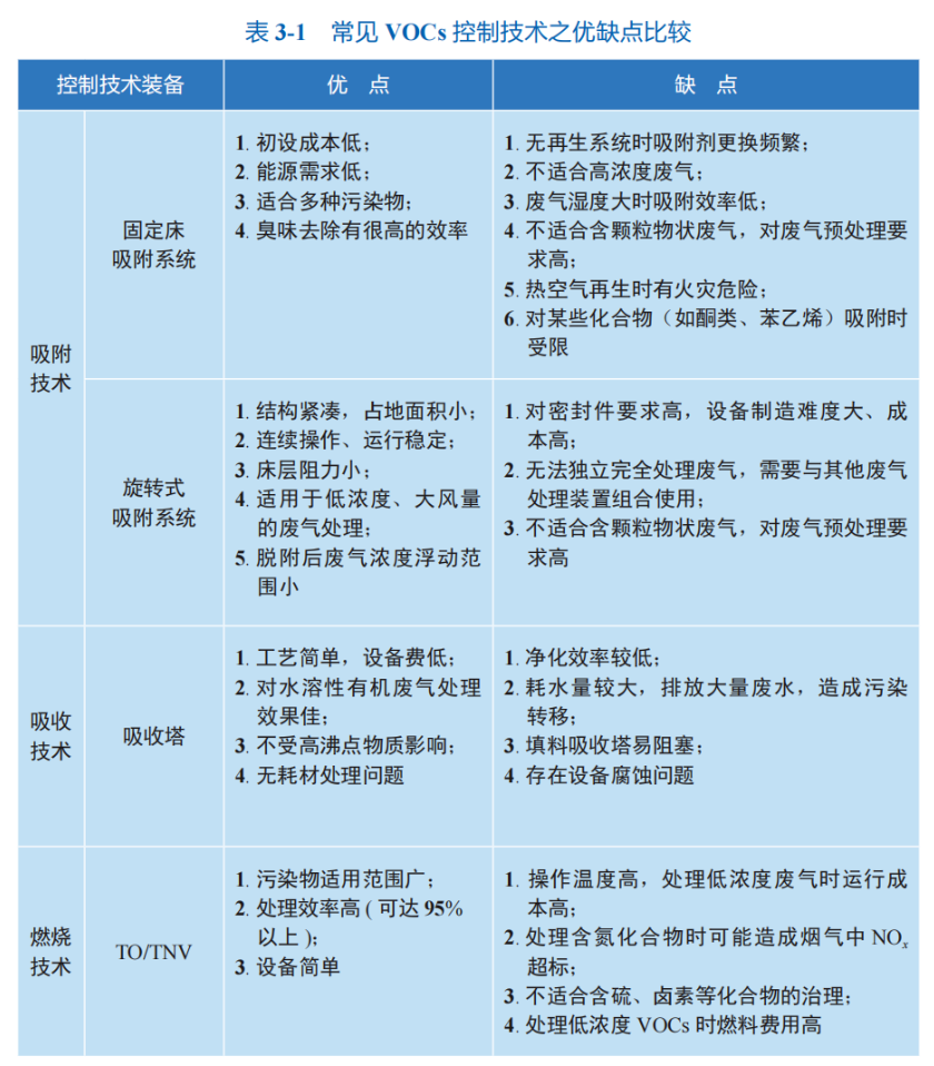 生態(tài)環(huán)境部大氣司《揮發(fā)性有機(jī)物治理實(shí)用手冊(cè)》中明確:實(shí)用的VOCs末端治理技術(shù)眾多,主要包括吸附、燃燒(高溫焚燒和 催化燃燒)、吸收、冷凝、生物處理及其組合技術(shù)。