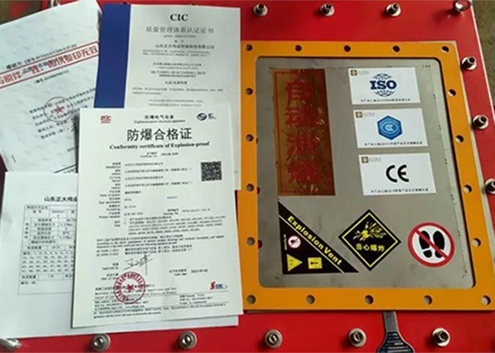 6、泄爆膜片——采用專業(yè)泄爆膜片裝置,設備內部產(chǎn)生爆炸時,它能夠在規(guī)定的溫度和壓力下爆破,泄放壓力,保護承壓設備的安全和操作人員的生命安全,以及避免使用的環(huán)境出現(xiàn)更大的損傷,泄爆膜片的爆破壓力為0.01Mpa,有專門的證書標識卡。