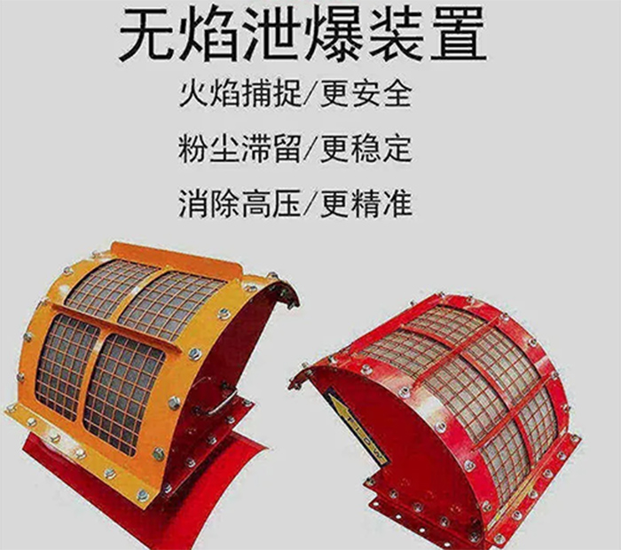無焰泄放裝置也叫粉塵無焰泄爆裝置或者無焰泄放裝置是由火焰熄滅模板,泄爆片,防 爆接線盒和夾持器組成??砂惭b于室內除塵箱體,泄爆片有信號裝置,可以通過接線盒與風機或者其他設備聯(lián)動。當發(fā)生粉塵爆炸時,爆破片對快速沖擊的爆燃壓力做出反應,并打開,以釋放壓力,膨脹的火球通過時打開的爆破片被熄滅模塊攔截。從而達到阻隔火焰以及通過打開防 爆門的燃燒和未燃燒的粉塵的作用,防止二次爆炸引起的傷害。
